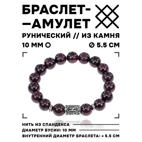 Стрейч-браслет с руной Хагалаз и бусинами из натурального граната.