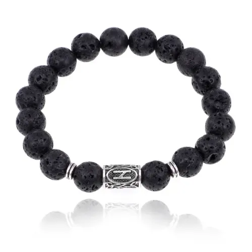 Браслет с руной Хагалаз и нат.камнем Лава BSRM-04-09