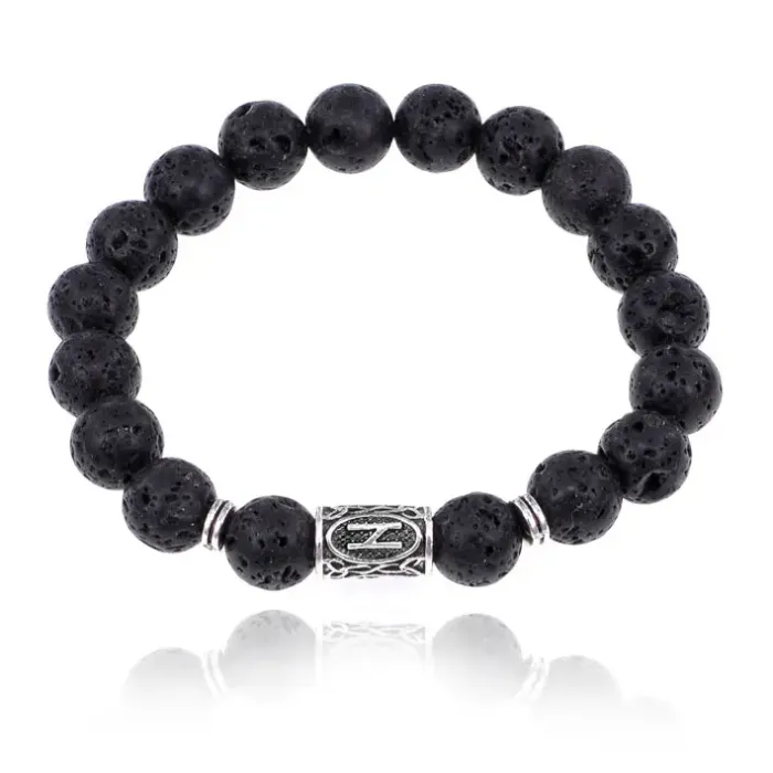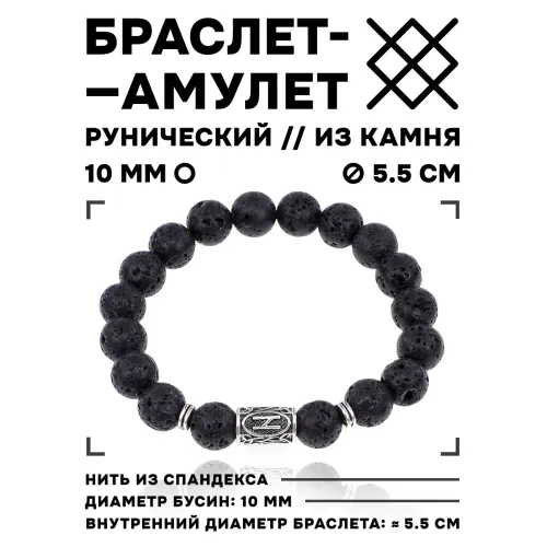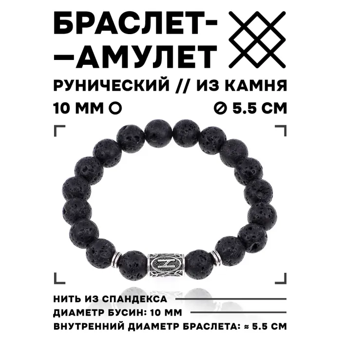 Стрейч-браслет с руной Хагалаз и бусинами из натурального камня Лава.