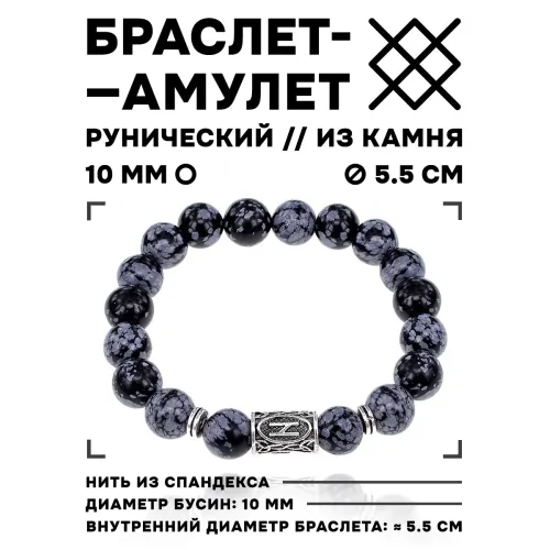 Стрейч-браслет с руной Хагалаз и натуральным камнем снежный обсидиан.