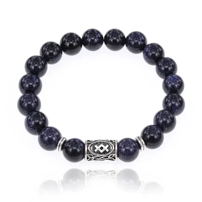 Браслет с руной Ингуз и синт. камнем Синий авантюрин BSRM-05-02