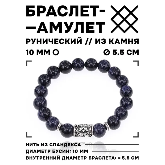 Стрейч-браслет с руной Ингуз и бусинами из синтетического камня.