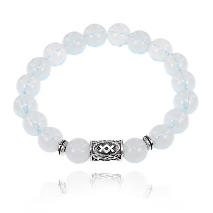 Браслет с руной Ингуз и синтетическим камнем Лунный камень BSRM-05-11