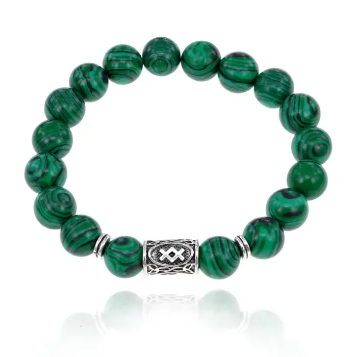 Стрейч-браслет с руной Ингуз и синтетическим камнем малахит.