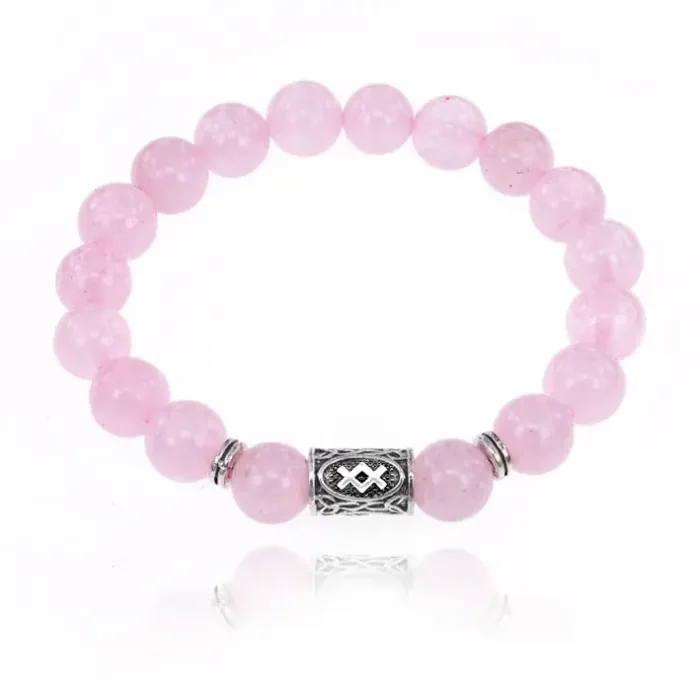 Стрейч-браслет с руной Ингуз и бусинами из натурального розового кварца.