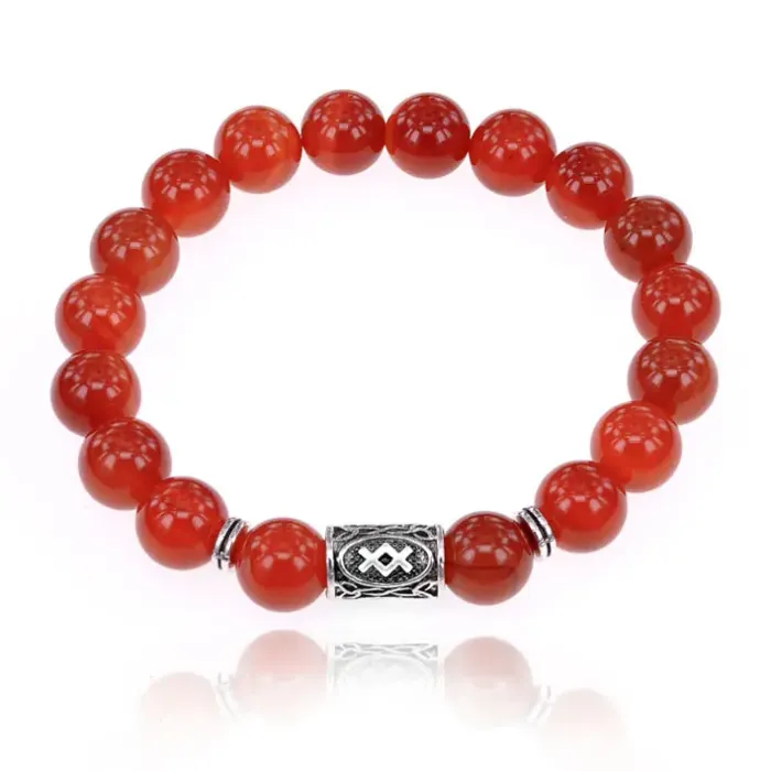 Стрейч-браслет с руной Ингуз и бусинами из натурального сердолика.