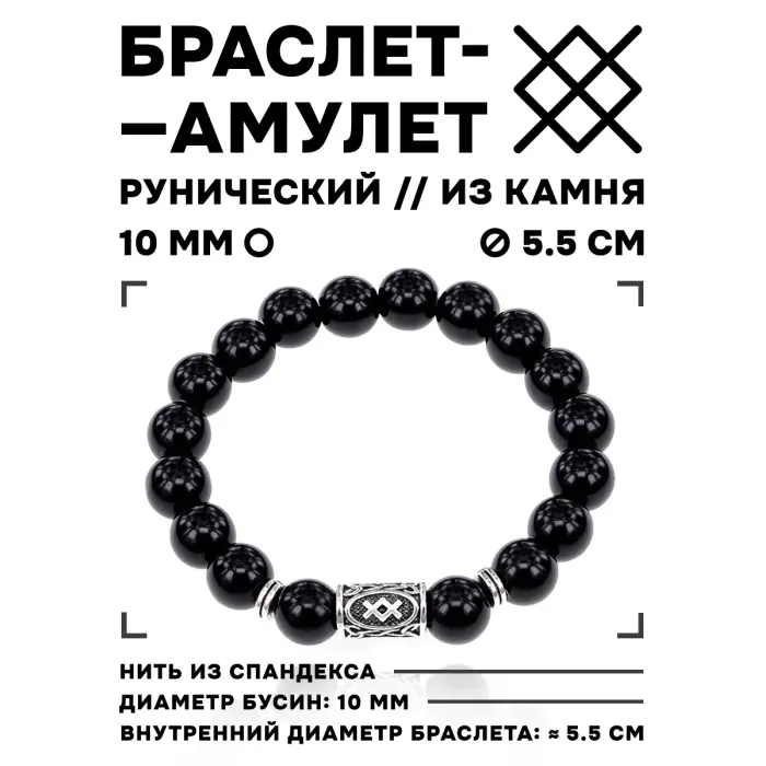 Браслет с руной Ингуз и нат. камнем Черный агат BSRM-05-23