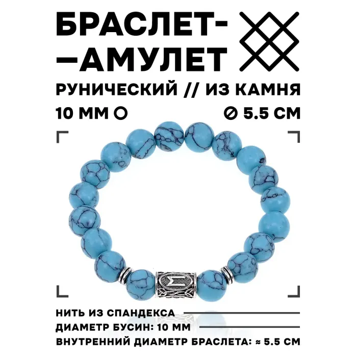 Стрейч-браслет с руной Эваз и синтетическим камнем бирюза.