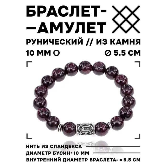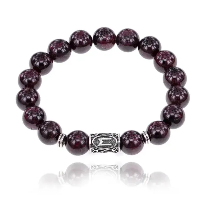 Стрейч-браслет с руной Эваз и натуральным камнем гранат.