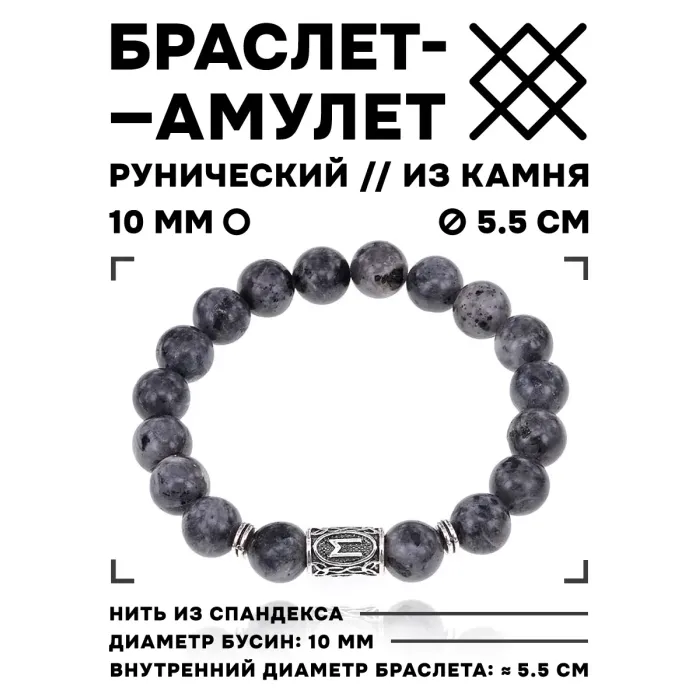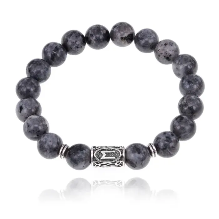 Стрейч-браслет с руной Эваз и бусинами из натурального камня лабрадор.