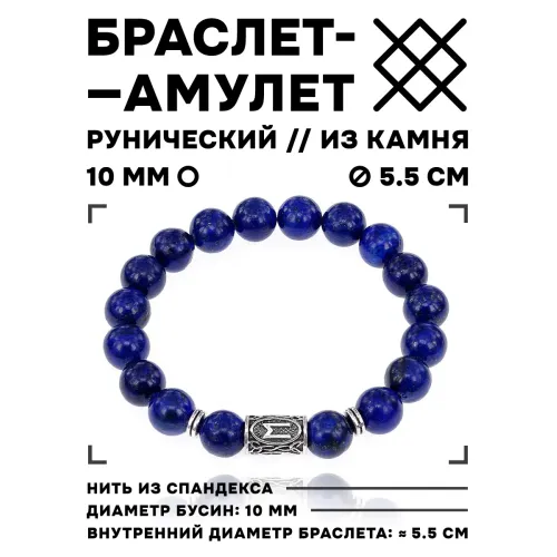 Браслет с руной Эваз и нат.камнем Лазурит BSRM-06-10