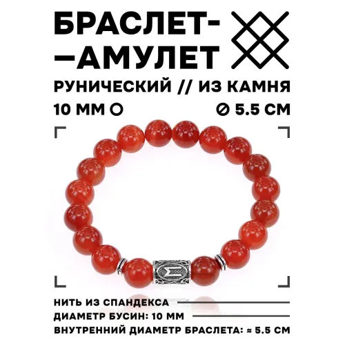 Стрейч-браслет с руной Эваз и бусинами из натурального сердолика.