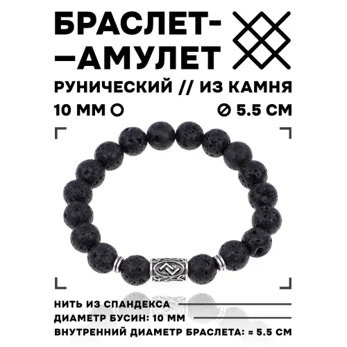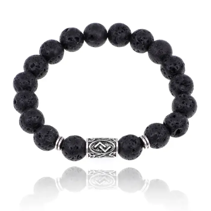 Рунический стрейч-браслет с руной Йера и натуральным камнем лава.