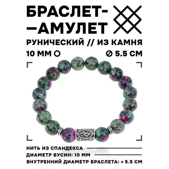 Браслет с руной Йера и синт.камнем Цоизит BSRM-07-22