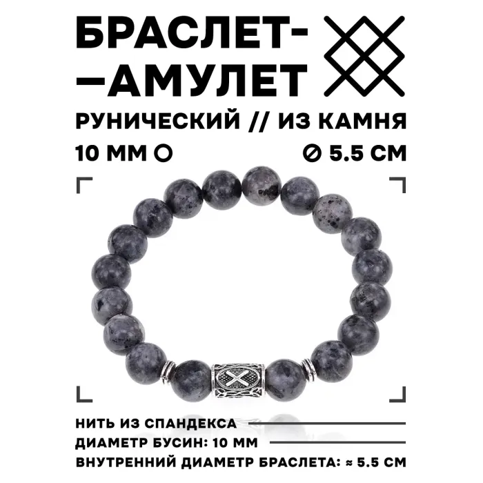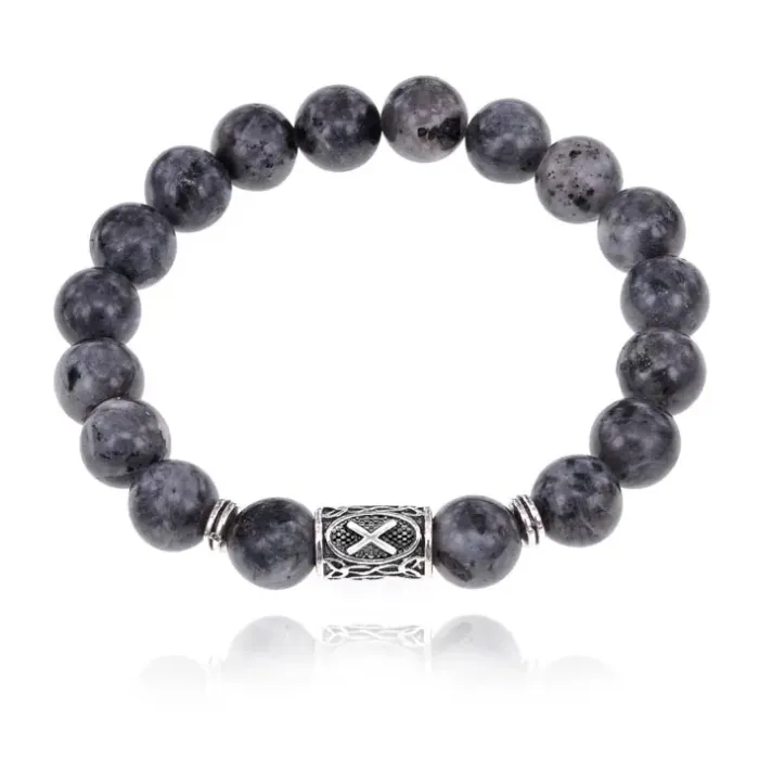 Стрейч-браслет с руной Гебо и бусинами из натурального камня лабрадор.