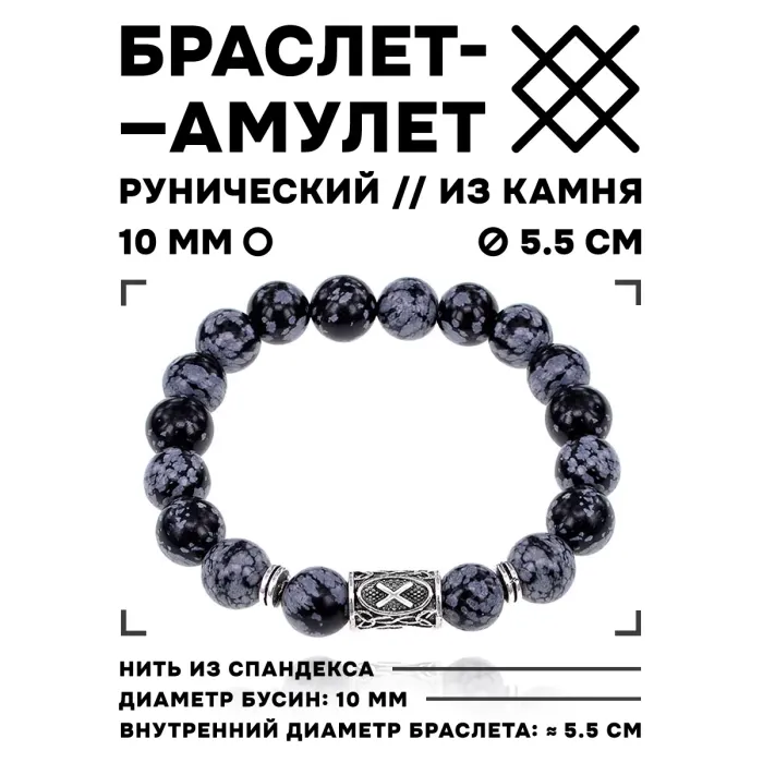 Браслет с руной Гебо и нат.камнем Снежный обсидиан BSRM-08-14