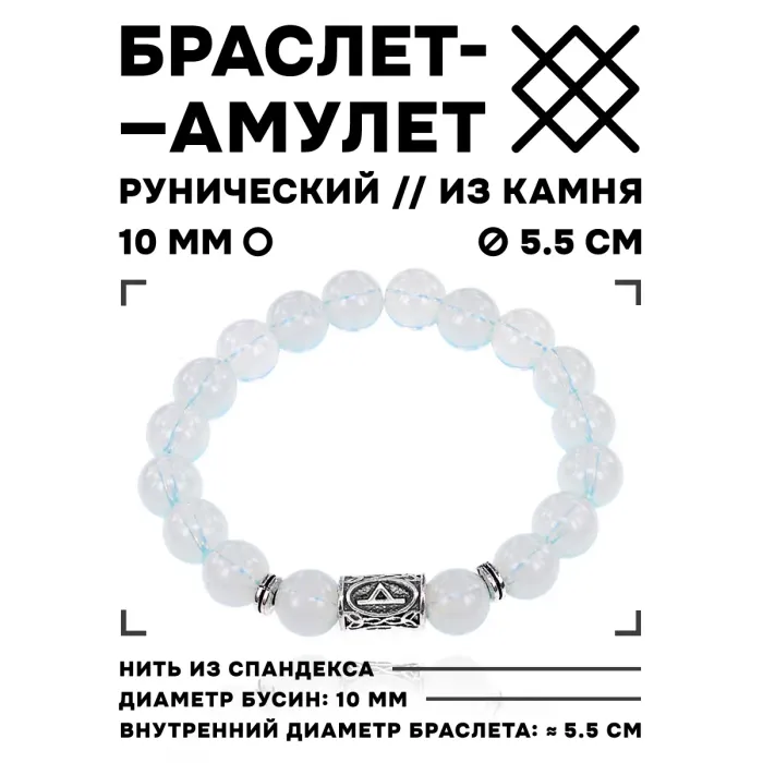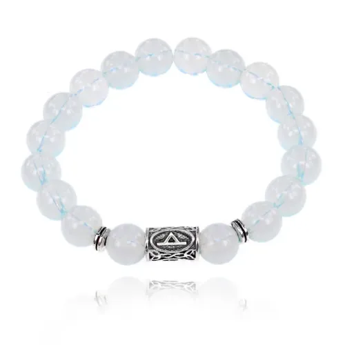 Рунический стрейч-браслет с символом Турисаз и бусинами из синтетического лунного камня.