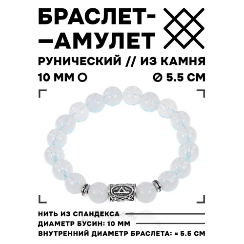 Размеры и комплектация: Внутренний диаметр около 5,4 см (диапазон 5,2–5,6 см), диаметр бусин 10 мм. В упаковке: прозрачный пакет с еврослотом, бархатный мешочек, буклет с описанием значений.