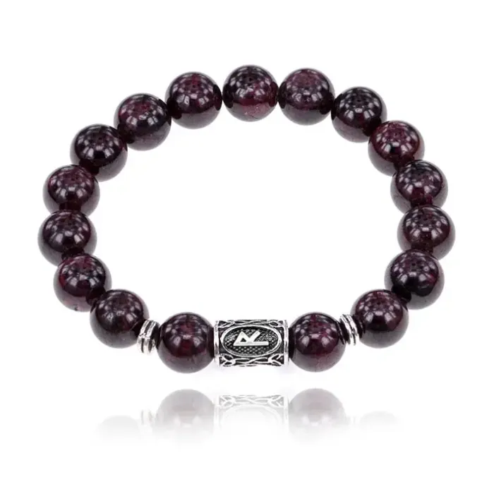 Стрейч-браслет с символом руны Райдо и бусинами из натурального граната.