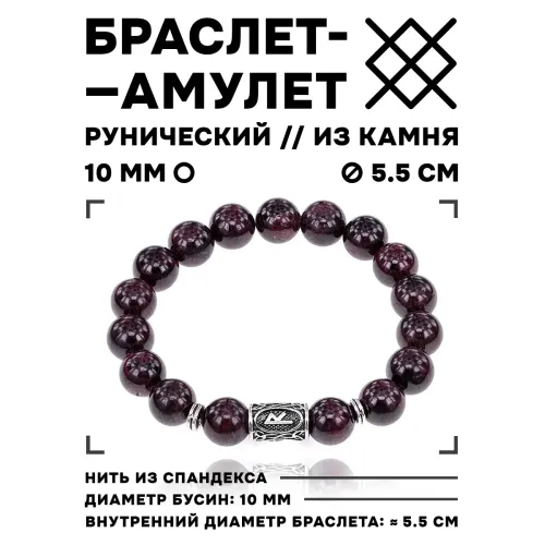 Браслет с руной Райдо и натуральным камнем Гранат BSRM-10-06