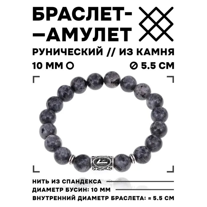 Стрейч-браслет с руной Лагуз и натуральным камнем лабрадор.