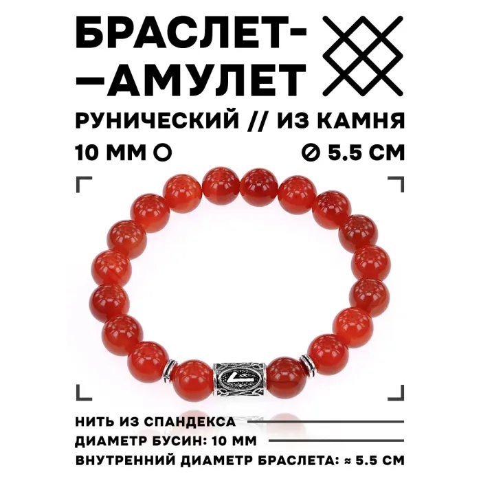 Рунический стрейч-браслет из натурального сердолика с символом Лагуз.