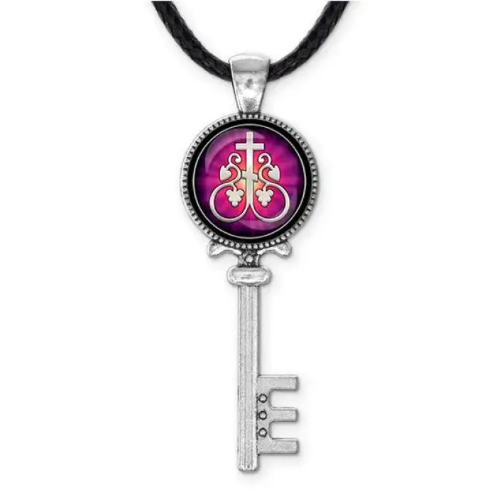 Кулон в форме ключа с изображением креста и виноградной лозы — это не только стильный аксессуар, но и символ надежды и изобилия. Изготовленный из бижутерного сплава с покрытием под бронзу и стекла, он станет прекрасным дополнением к любому образу. Размер кулона составляет 60 x 20 мм, а длина шнурка — 45 см. Застёжка замок типа лобстер обеспечивает надежность носки. Изображение защищено выпуклой стеклянной линзой для долговечности и яркости деталей.