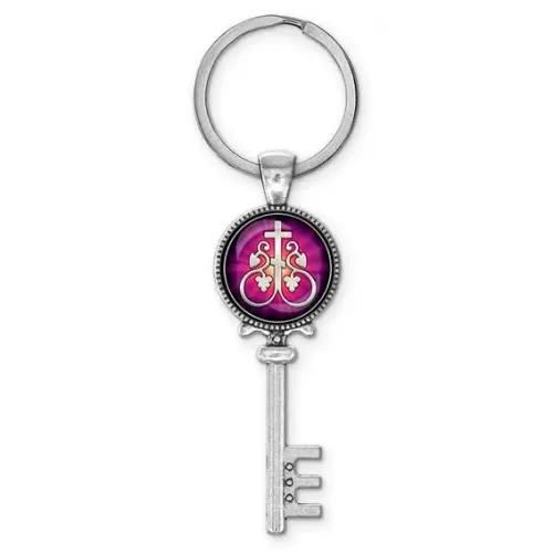 Брелок ключ в цвете серебра — это стильный аксессуар, который не только выполняет практическую функцию, но и служит символом веры и надежды. Изготовленный из бижутерного сплава с покрытием под бронзу и стекла, этот брелок станет отличным дополнением к набору ключей.