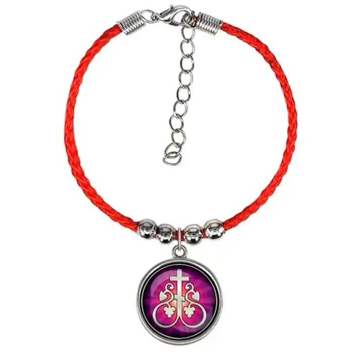 Браслет из красного шнура — это стильный аксессуар с глубоким символизмом. Он украшен изображением креста, защищенным выпуклым стеклом на металлической основе. Этот браслет не только привлекает внимание своим ярким дизайном, но и несёт в себе культурное значение, связанное с традициями и верой.