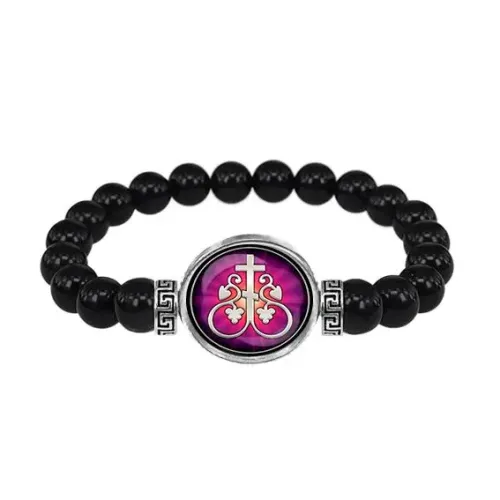 Стрейч-браслет из натурального камня Чёрный агат диаметром 8 мм — это стильное украшение с глубоким символизмом. Изображение креста Виноградной лозы диаметром 20 мм подчеркивает уникальность изделия и расположено под выпуклой стеклянной линзой. Сеттинг выполнен из бижутерного сплава с покрытием под серебро, что придаёт браслету элегантный вид и долговечность. Этот аксессуар станет прекрасным дополнением к любому образу, а также может быть замечательным подарком для близких. Браслет сочетает в себе красоту и традиционные ценности, что делает его особенно привлекательным для ценителей уникальных украшений.
