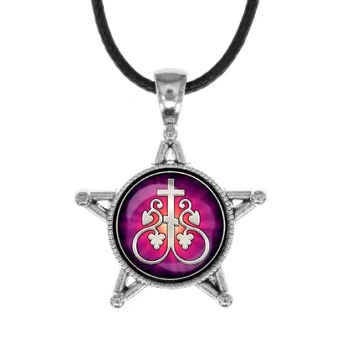 Звезда-кулон с изображением Креста Виноградная лоза — это стильное украшение, которое сочетает в себе элегантность и символику. Изготовленный из бижутерного сплава под серебро и стекла, этот кулон станет замечательным дополнением к любому образу.