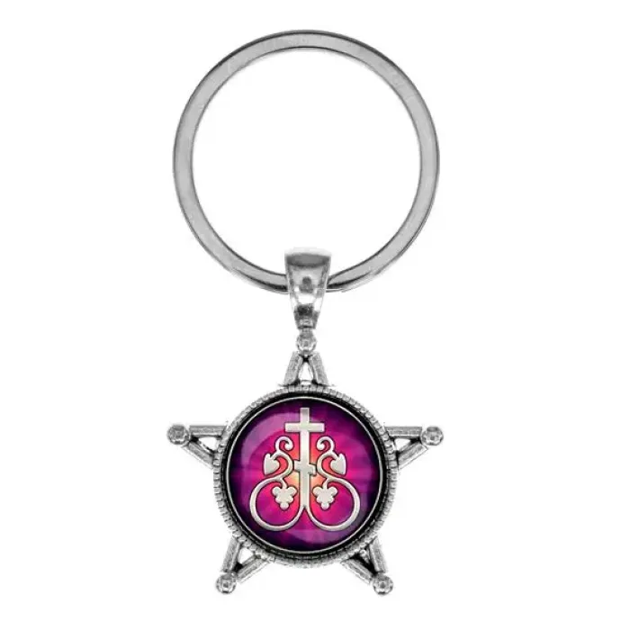 Звезда-брелок с изображением Креста Виноградная лоза — это стильный аксессуар, который не только украсит ключи, но и станет символом веры и надежды. Изготовленный из бижутерного сплава под серебро с защитным стеклом, этот брелок сочетает в себе элегантность и прочность.
