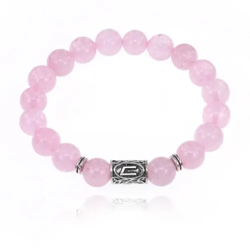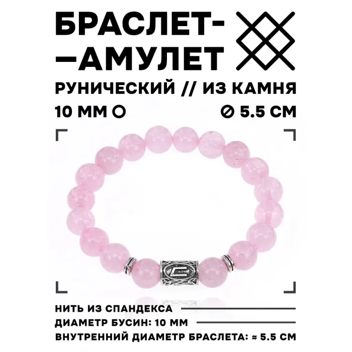 Стрейч-браслет с руной Уруз и бусинами из розового кварца.