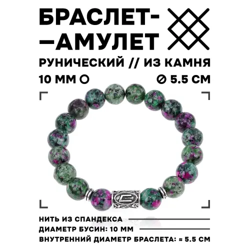 Стрейч-браслет с руной Уруз и синтетическим камнем цоизит.