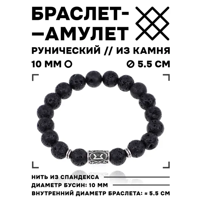 Материал и изготовление: Натуральный камень лава (базальт), металлическая подвеска с символом руны. Изготавливается под заказ.