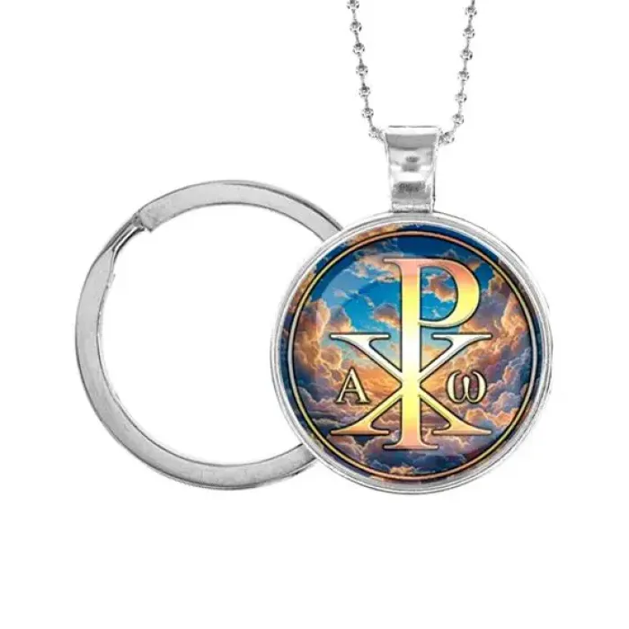 Кулон-брелок Хризма — стильный аксессуар, который сочетает в себе элегантность и функциональность. Этот уникальный предмет может служить как кулоном на цепочке, так и брелком для ключей. Изготовленный из бижутерного сплава с покрытием под серебро и стекла, он привлекает внимание своим утончённым дизайном.