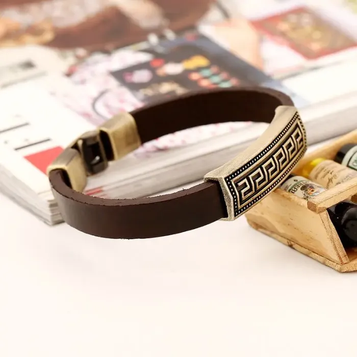 Кожаный браслет Меандр, 220х11 мм BS329-1