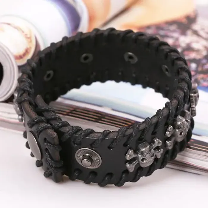 Кожаный браслет с декоративным элементом «Веселый Роджер».