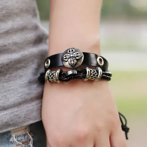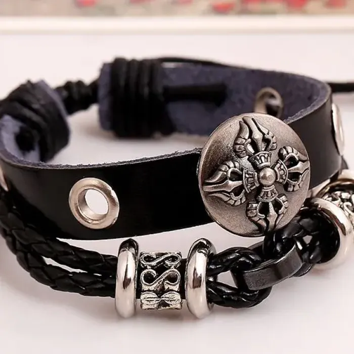 Кожаный браслет Ваджра — это стильный аксессуар с глубоким символическим значением. Он традиционно ассоциируется с силой и защитой, что делает его идеальным подарком для ценителей уникальных украшений.