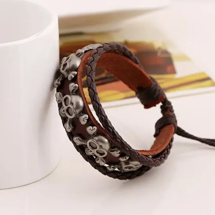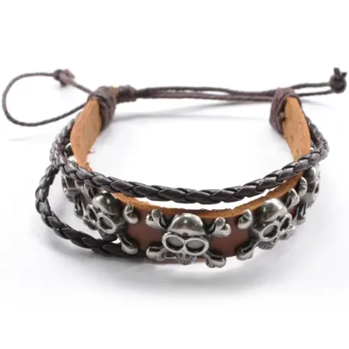 Кожаный браслет Черепа, ширина 12 мм, регулируемая длина BS341