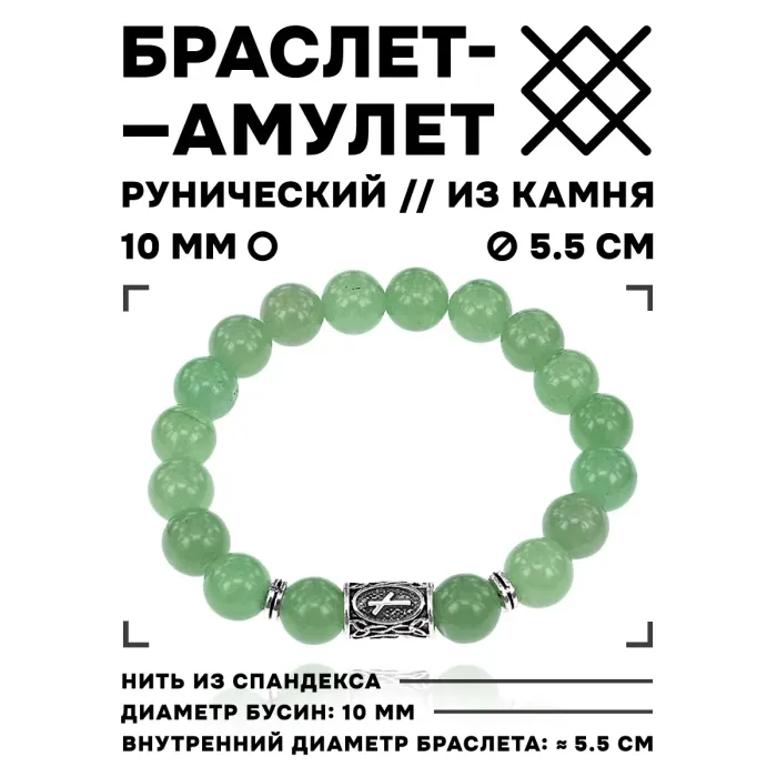 Рунический стрейч-браслет с символом Наутиз и бусинами из натурального нефрита.