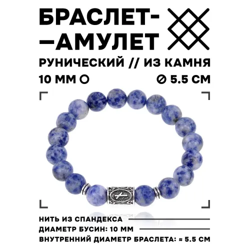 Стрейч-браслет с руной Наутиз и бусинами из натурального камня содалит.