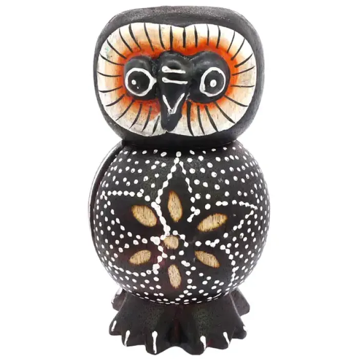 Деревянная статуэтка совы для интерьерного декора.