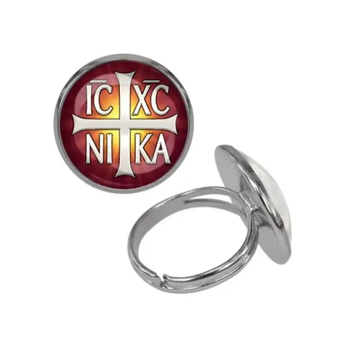 Безразмерное кольцо с изображением креста под выпуклой стеклянной линзой. Диаметр изображения составляет 20 мм. Изготовлено из бижутерного сплава с покрытием под серебро и стекла, что придаёт изделию элегантный вид и долговечность. Это украшение станет отличным подарком для ценителей православной символики и духовных традиций. Традиционно такие кольца используются как знак веры и преданности, а также могут служить стильным аксессуаром в повседневной жизни.