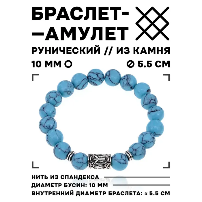Стрейч-браслет с руной Альгиз и синтетическим камнем бирюза.