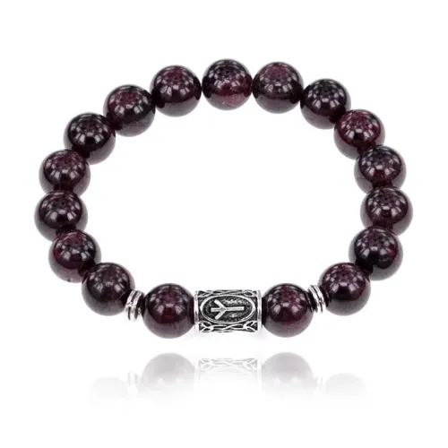 Стрейч-браслет с руной Альгиз и бусинами из натурального граната.