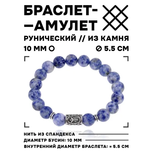 Стрейч-браслет с руной Альгиз и бусинами из натурального камня содалит.