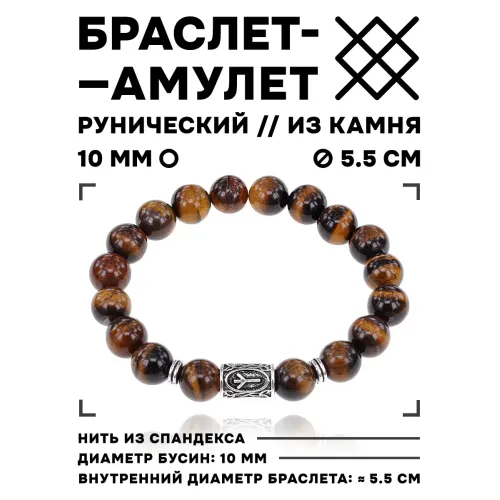 Стрейч-браслет с руной Альгиз и бусинами из натурального камня Тигровый глаз.