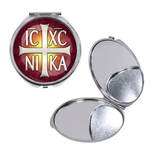 Круглое складное зеркало, цвет серебро, Крест Просфорный Константиновский C1005016