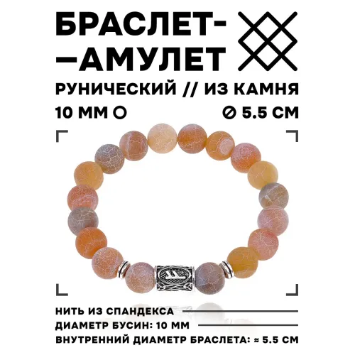 Стрейч-браслет с руной Феху и бусинами из африканского агата.